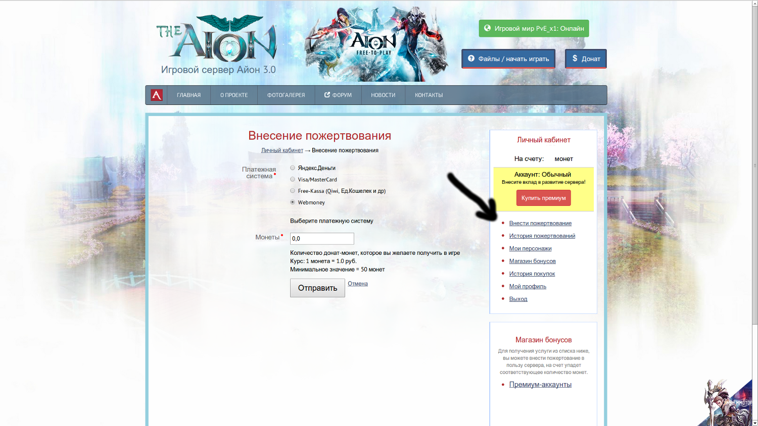Donate in the game is carried out by making donations in the personal account on the site https://theaionserver.com/